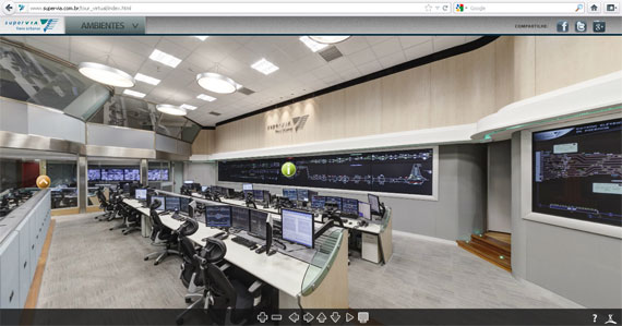 A SuperVia lançou um passeio virtual pelo novo Centro de Controle Operacional (CCO) da empresa. A página interativa está disponível no site da concessionária (www.supervia.com.br) e mostra imagens em alta resolução, em 360º, dos principais setores e recursos do local. Inaugurado em março de 2012, o CCO garante mais eficiência e segurança à circulação de trens e é resultado de um investimento de R$ 40 milhões.