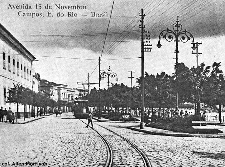 Voltando no tempo de nossa Campos dos Goytacazes , atravessada pelo rio Paraíba do Sul, na parte oriental do Estado do Rio de Janeiro, a 40 km do mar e a 275 km a nordeste da cidade do Rio de Janeiro... Foi um dos centros da indústria de açúcar do Brasil e tinha uma população de 30.000 habitantes em 1910. Hoje já passa de meio milhão... Campos distingue-se por ser a primeira cidade do Brasil – antes mesmo de Rio de Janeiro e São Paulo – a instalar, em 24 de junho de 1883, iluminação elétrica em suas ruas.