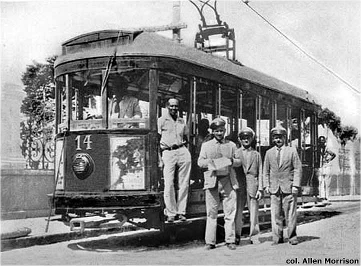 Aqui vemos o número 14, no fim da linha, em frente ao cemitério, pouco antes de retirar-se definitivamente para a garagem de bondes