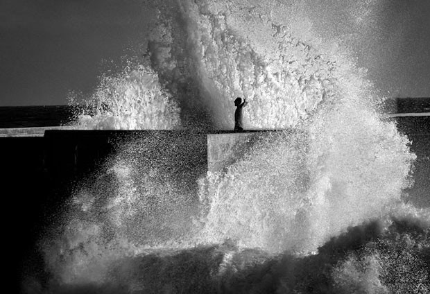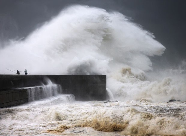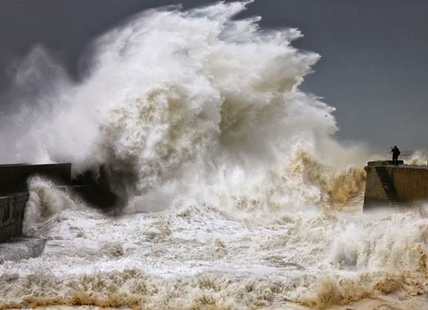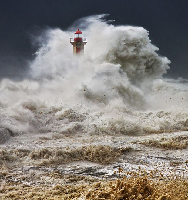 O fotógrafo búlgaro Veselin Malinov registrou uma tempestade de água do mar no Farol de Felgueiras, na cidade do Porto. As fotos deram origem à sérieFlirting With The Elements, que mostra, inclusive, pessoas corajosas (ou loucas!) o suficiente para andar bem próximas das gigantes paredes de água.