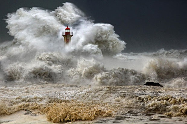 A natureza pode ser muito destrutiva, mas também muito bela. Quantas inundações não acabaram com cidades inteiras? Mas quando a força das águas termina por protagonizar lindas paisagens em um farol, em Portugal, ela é capaz de criar imagens encantadoras.