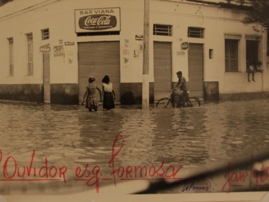 — Numa tarde em que estive na casa do meu filho Jhonny, ficamos vendo fotos e, então, pedi-lhe emprestadas algumas imagens. “Scaneei” algumas e postei no meu Facebook. Bombou! Foram muitas curtidas! Pensei: Vou criar um grupo! E foi assim que nasceu o “Relembrando Campos”. As fotos impressas são do meu filho. Vou pegando as imagens com ele aos poucos, e jogando no grupo. São fotos da enchente que teve na cidade. Eu tinha 22 anos, na época. Eu morava na Rua 21 de Abril e lembro-me de que a água chegou na beiradinha da calçada. Foi uma coisa muito triste! — comentou Virgínia.