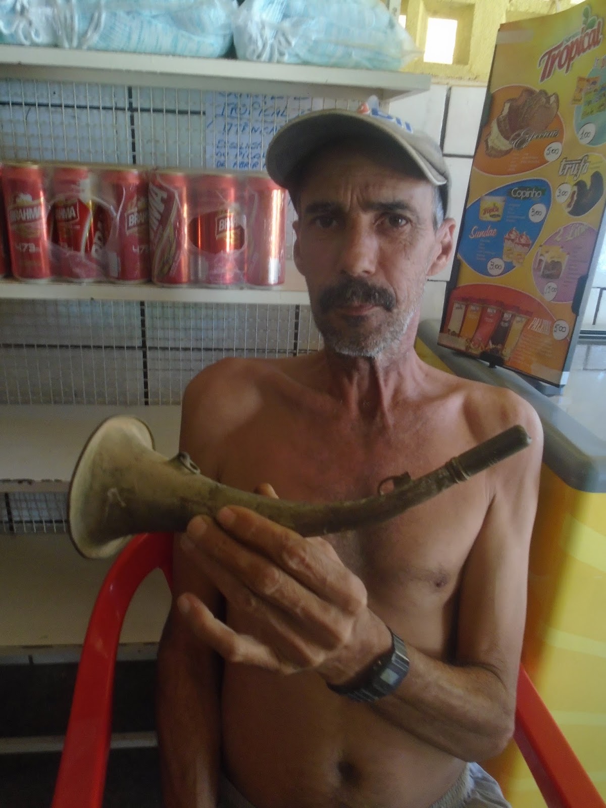 | Luís Lídio e a rara corneta com que seu avô chamava os cães de caça |