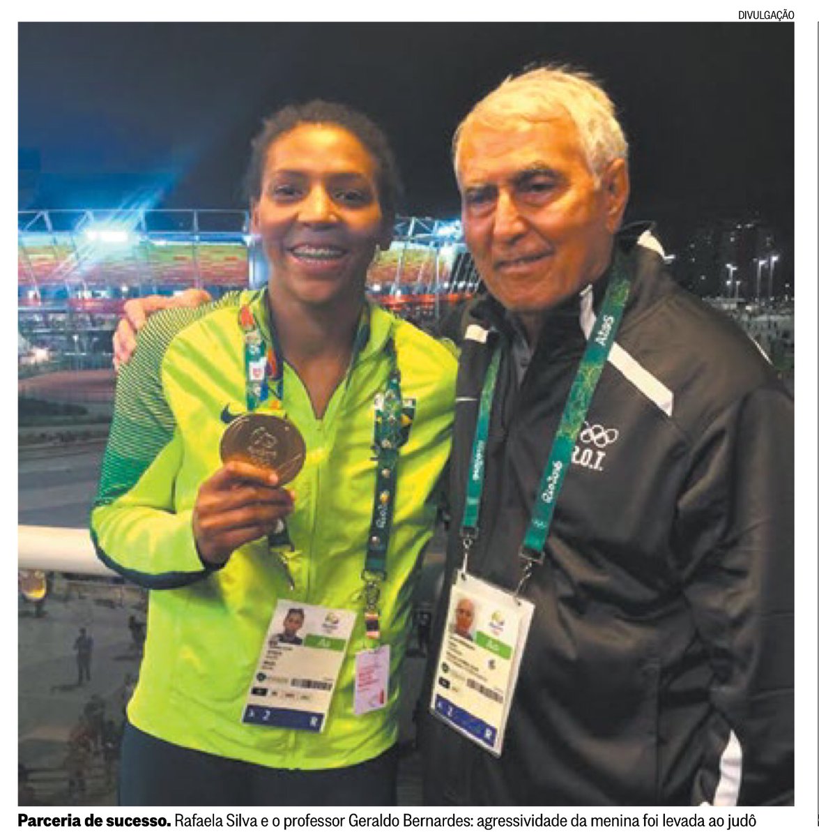 Professor Geraldo Bernardes com a atleta Rafaela Silva do Judô (meu antigo professor da modalidade, na UGF, época esta que também foi vencedor, também como técnico, de outra medalha de ouro nas Olimpíadas de 1988, em Seul, com o atleta Aurélio Miguel). O professor sempre muito exigente e competente, suas marcas registradas nesta sua vencedora carreira. Bons treinos!