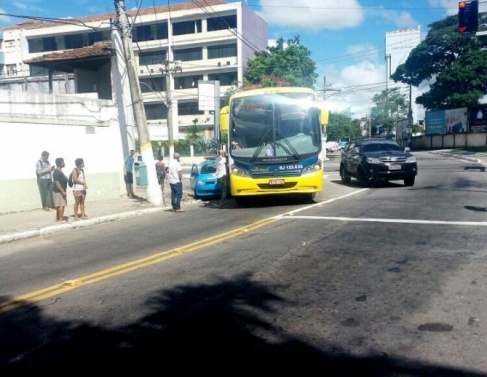 Uma colisão envolvendo uma viatura da Polícia Militar e um ônibus da empresa Brasil foi registrada na manhã desta segunda-feira (13), no cruzamento da avenida XV de Novembro com a rua Rocha Leão, no bairro Caju, em Campos. Segundo a Polícia Militar, o caso aconteceu por volta das 10h, próximo ao Hospital Ferreira Machado (HFM), e ninguém ficou ferido.