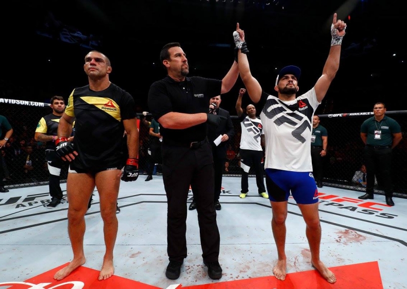 Belfort perde/A expressão “deu ruim” define bem a luta principal do UFC Fortaleza, entre o antes “Fenômeno” Vitor Belfort contra o americano, Kelvin Gastelum. O evento, equilibrado nos resultados, reuniu 13 brasileiros em 12 combates e teve como saldo seis vitórias e um empate, para os atletas da casa entre a noite de sábado e a madrugada deste domingo (12). No card principal, superação ou a tentativa dela foi a ordem com Alex Cowboy vindo de uma revanche de “no contest”, após uma joelhada irregular de Tim Means e ganhando por finalização; Bethe Correia tentando reencontrar a vitória, após duas derrotas, e empatando com Marion Reneau; e Maurício Shogun Rua, ganhando o americano, amigo de Chris Weidman e algoz de Anderson Silva, Gian Villante, emplacando a terceira vitória consecutiva, feito inédito para ele, em mais de 15 anos de Mixed Martial Arts (MMA). A meta não alcançada ficou por conta de Belfort, que perdeu no primeiro round para o jovem Kelvin e deixou o octógono anunciando o fim da carreira ainda este ano.