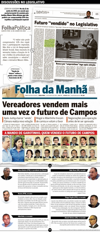 Legalidade — Também parlamentares na legislatura anterior, Edson Batista (PTB), ex-presidente da Câmara, e Thiago Virgílio (PTC) defendem o projeto. Segundo Edson, a atitude da gestão passada foi correta para manter a cidade funcionando. Histórico aliado do casal Garotinho, Edson ainda mandou um recado para o atual governo: “As pessoas que estão no governo têm que pensar no hoje, no amanhã, não ficar em busca de fantasmas no passado”.