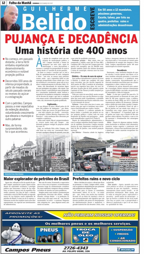Às portas de completar mais um aniversário de emancipação política, o 182º, Campos reacende a chama de inaugurar um novo ciclo, capaz de interromper a curva descendente e retomar o caminho da prosperidade do qual se afastou desde a 2ª metade do século passado.