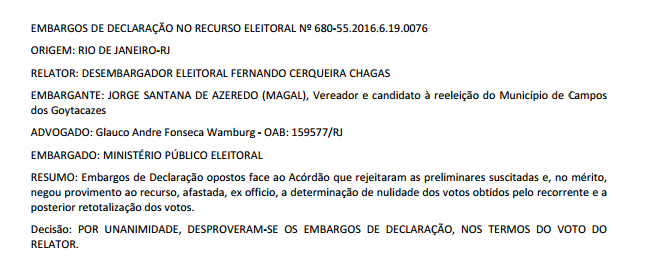 Abaixo, a publicação do Diário Oficial de amanhã, que já traz os embargos de declaração do vereador Magal: