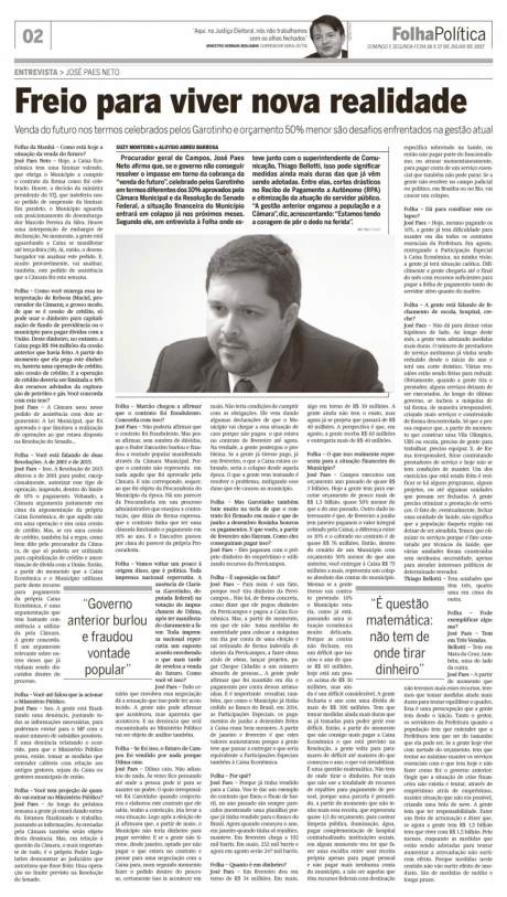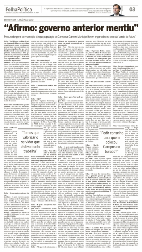 Leia abaixo a entrevista na íntegra e a edição de hoje da Folha da Manhã: