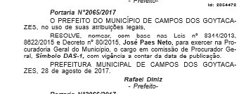O advogado José Paes Neto está de volta ao cargo de procurador geral do Município. A nomeação consta no Diário Oficial de hoje.