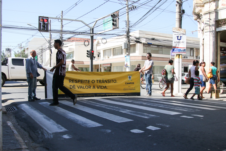 “Respeite o trânsito, dê valor à vida”. Essa é a frase da campanha "Maio Amarelo" levada em faixas aos motoristas, motociclistas e pedestres que transitam nas ruas de Campos. Nesta quinta-feira (3), uma equipe do Instituto Municipal de Transito e Transportes (IMTT) esteve no cruzamento das ruas Tenente Coronel Cardoso (antiga Formosa) e Barão de Miracema, dando orientações e distribuindo adesivos como parte da conscientização. O nome é alusivo à Campanha lançada no mês de maio, pelo Governo Federal, mas que, em Campos, irá seguir durante o ano inteiro.