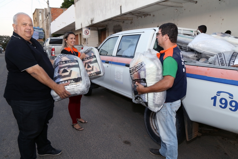 Material – SFI recebeu, através da Redec, 187 lençóis, 187 fronhas, 600 travesseiros, 125 cobertores, 36 colchões de solteiro, 35 kits dormitórios, 19 colchões infláveis e quatro bombas, 23 capas de chuvas e 290 toalhas de banho. O material ficará estocado num galpão da administração municipal.