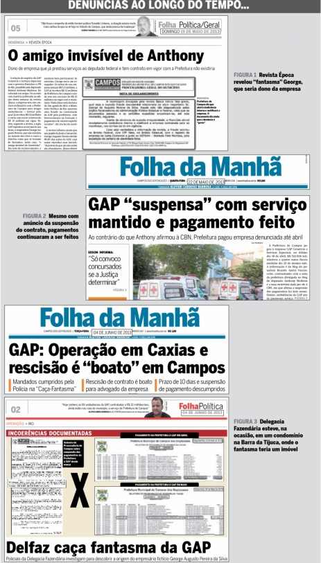 Não é somente em Duque de Caxias, Baixada Fluminense, que o “fantasma” George Augusto Pereira da Silva é investigado. Em Campos, onde a GAP AP Comércio e Serviços Especiais, empresa que teria o “fantasma” como proprietário e foi contratada pela então prefeita Rosinha Garotinho (PR) para locação de ambulâncias, há Ação Civil Pública, sobre o caso. Como réus, além do próprio George e da GAP, a ex-prefeita de Campos, o ex-secretário municipal de Administração, Fábio Ribeiro, e um servidor público da secretaria de Saúde.