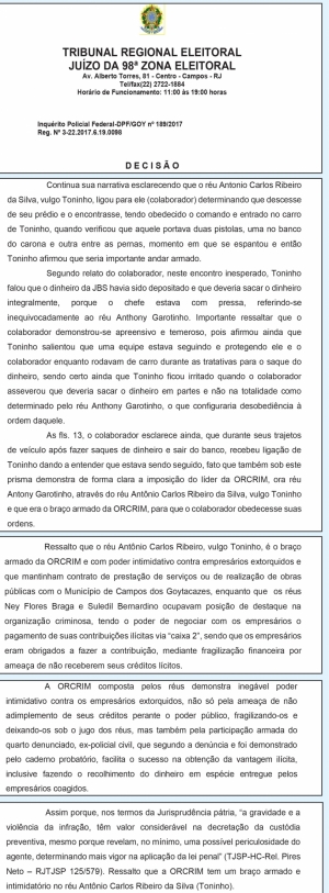 Com a operação Caixa d’água, a intimidação, agora de maneira mais direta, se revelou através de um “cobrador” armado. Ele teria extorquido empresários que tinham contratos com Prefeitura de Campos para caixa de campanha de Garotinho.