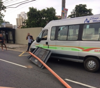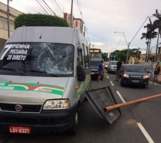 Uma placa de sinalização de trânsito localizada na ciclovia da avenida 28 de Março, entre a José Alves de Azevedo (Beira Valão) e Barão de Miracema, caiu em cima de uma van, que fazia a linha Penha X Pecuária, na tarde sexta-feira. Com o impacto, o vidro da frente do veículo quebrou. Apesar do susto, ninguém se feriu. O trânsito no local chegou a ficar parcialmente parado.