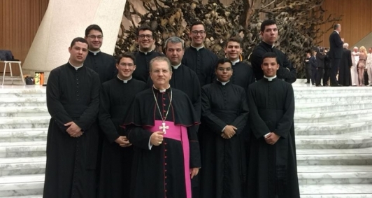 O bispo da Administração Apostólica São João Maria Vianney, Dom Fernando Arêas Rifan, acompanhado de seminaristas da circunscrição eclesiástica, participou de mais um encontro com o Papa Francisco, nesta quarta-feira, no Vaticano.