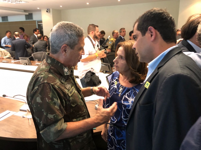Acompanhado da presidente da Comissão de Segurança Pública e Assuntos de Polícia da Alerj, deputada Martha Rocha (PDT), o deputado Bruno Dauaire conversou com o general Walter Souza Braga Netto, que está no comando das forças de segurança do Estado do Rio, e solicitou atenção especial no planejamento para evitar que a violência migre para o interior. Ele solicitou uma reunião, a fim de ampliar a cooperação com todos os órgãos envolvidos, como Ministério Público, Defensoria Pública e Tribunal de Justiça. “O momento é crítico e a intervenção era a única saída possível, mas o que precisamos agora é da união de todos e de um plano de contenção que proteja o interior, para que não aconteça o mesmo problema da época da criação das UPPs. É preciso impedir que a violência migre para o interio”, disse o deputado.
