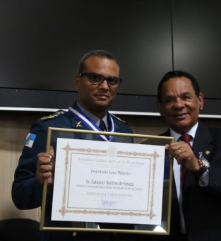 O comandante do 8º Batalhão de Polícia Militar (BPM), tenente-coronel Fabiano Souza, foi homenageado pelo deputado estadual João Peixoto com a maior honraria do Estado do Rio de Janeiro, a Medalha Tiradentes e seu respectivo diploma, pelos relevantes serviços prestados à sociedade do estado, sobretudo às regiões Norte e Noroeste fluminense. A solenidade aconteceu na noite desta sexta-feira na Câmara Municipal de Vereadores.