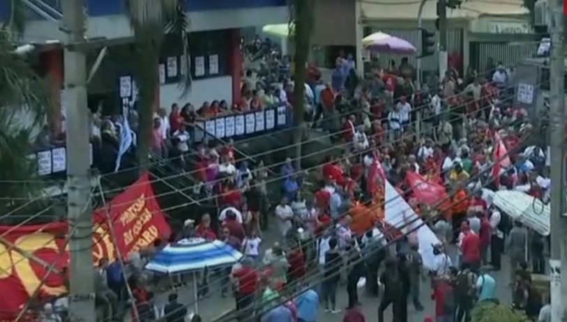 Apoiadores de Lula em frente ao Sindicado dos Metalúrgicos