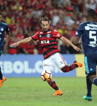 O Rubro-Negro ameaçou mais duas vezes, em bomba de Rodinei e chute de Dourado, ambos interceptados pela defesa. Aos 32, Vinicius Junior desperdiçou a chance mais clara. A defesa do Emelec recuou errado, e o atacante do Fla demorou a perceber que não estava em condição de impedimento. Os equatorianos deram um susto aos 39, em chute de Preciado e rebote de Lastra. Aos 46, Éverton Ribeiro, de novo, em linda cobrança de falta, espantou o fantasma da primeira fase voltar a assombrar o Flamengo. (A.N.)