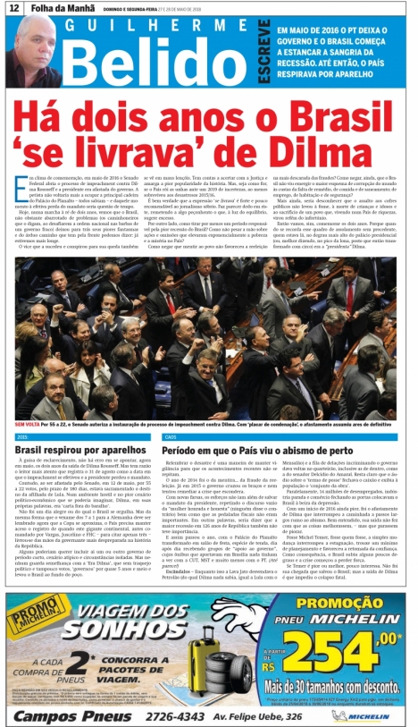 À guisa de esclarecimento, não há erro em se apontar, agora em maio, os dois anos da saída de Dilma Rousseff. Mas tem razão o leitor mais atento que registra o 31 de agosto como a data em que o impeachment se efetivou e a presidente perdeu o mandato.