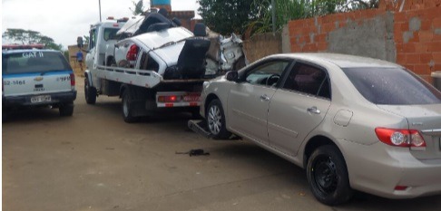 PM recupera carro roubado e peças em local de desmanche