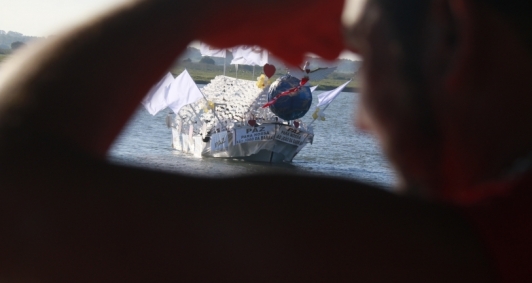 O desfile fluvial saiu da igreja de Nossa Senhora da Penha, em Atafona, até o Cais do Imperador, na sede do município de São João da Barra. As embarcações fizeram o percurso pelo rio Paraíba do Sul carregando o mastro com a imagem do padroeiro até sua igreja matriz.