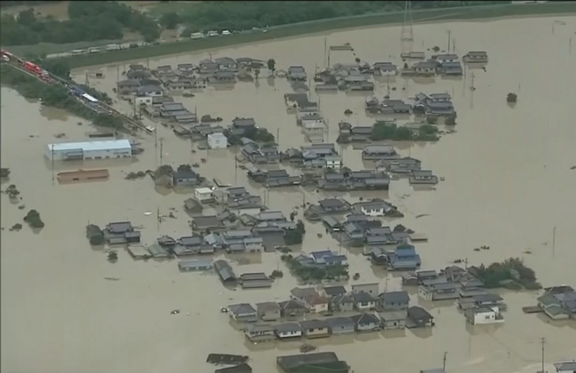 Soldados das Forças de Autodefesa (Exército), da Polícia e dos bombeiros continuam nesta segunda com as operações de resgate de pessoas refugiadas em terraços e tetos de casas que ficaram inundadas, ao mesmo tempo que prossegue a busca pelos desaparecidos, segundo a emissora estatal "NHK".