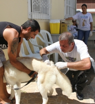 A vacina, em São João da Barra, é aplicada por agentes de combate às endemias que participaram de um curso de capacitação sobre transmissão e profilaxia da raiva, que fez parte da primeira etapa da campanha de vacinação em 2017.
