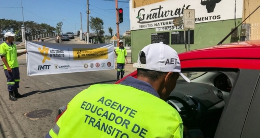 Nesta segunda-feira, no penúltimo dia da “Semana Nacional de Trânsito”, a blitz educativa do Instituto Municipal de Trânsito e Transporte (IMTT) e parceiros aconteceu no Parque Vicente Dias, em Guarus. Quinze jovens do programa de “Agentes Educadores de Trânsitro”, do IMTT, distribuíram panfletos, entre 10h e 13h, no cruzamento da rua Arlindo Gregóri Barbeitas no encontro da avenida Bartholomeu Lizandro com a Alberto Lamego, na subida da Ponte Saturnino de Brito (da Lapa).