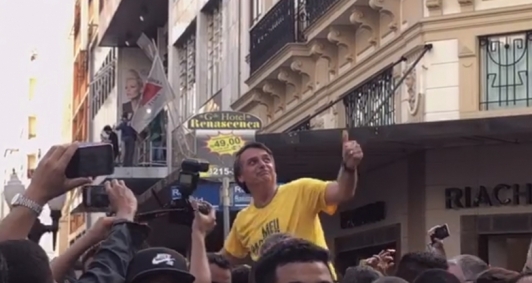 O candidato à presidência da República, Jair Bolsonaro (PSC) foi esfaqueado, na tarde desta quinta-feira, durante ato de campanha em Juiz de Fora, Minas Gerais. O presidenciável foi socorrido por apoiadores e levado à Santa Casa de Misericórdia da cidade. A princípio, a informação era que o ferimento tinha sido leve, porém, o candidato teve que passar por cirurgia para conter uma hemorragia. A unidade hospitalar informou que ele sofreu lesão no intestino e seu estado é considerado grave, mas estável e ele segue internado na Unidade de Tratamento Intensivo (UTI). O suspeito, identificado como Adélio Bispo de Oliveira, 40 anos, foi preso minutos após, confessou o crime e disse que agiu “a mando de Deus”. A Polícia Federal vai reforçar a segurança dos presidenciáveis. Autoridades condenaram o ataque.