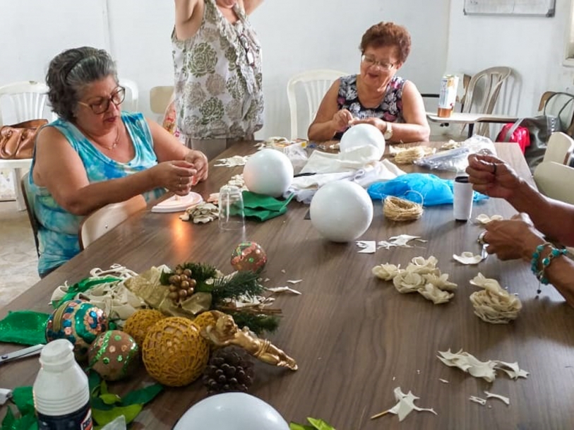Foi realizada, nesta quinta-feira (4) a primeira aula do workshop de artesanato natalino do grupo Mãos da Sabedoria, uma parceria da Superintendência do Envelhecimento Saudável e Ativo com a Incubadora Tecnológica de Empreendimentos Populares (Itep) da Universidade Estadual do Norte Fluminense (Uenf). As aulas, que são ministradas a 25 idosas do programa, têm como foco o diferencial na decoração natalina, com a utilização de elementos naturais e sustentáveis.