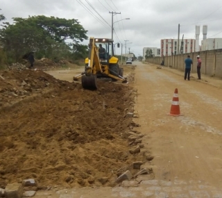 Cerca de 10 homens, com o apoio de uma máquina retroescavadeira e um caminhão, realizam reparos em um trecho da rua Júlio Barcelos. O trabalho é feito na parte onde o pavimento é de paralelepípedos, na altura do bairro Jóquei Clube II. A obra começou no mês passado e a previsão é de que o serviço seja concluído até o final do mês.