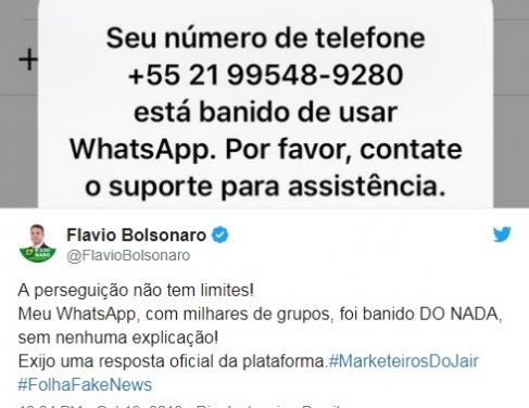 Filho do presidenciável Jair Bolsonaro, o deputado estadual Flávio Bolsonaro (PSL), senador mais votado nas eleições deste ano, postou em suas redes sociais, na manhã desta sexta-feira (19), que teve o seu número de telefone banido "do nada" pelo WhatsApp. A empresa confirmou que a conta foi banida e alegou “comportamento de spam”.