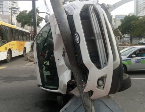 Já entre a 28 de Março e a Beira-Valão, o carro ficou escorado em um poste, que corre o risco de cair. Os três ocupantes do veículo - dois menores e um homem de 63 anos - recusaram atendimento. A Guarda Civil Municipal controlou o trânsito, que ficou em meia pista até a retirada do veículo.