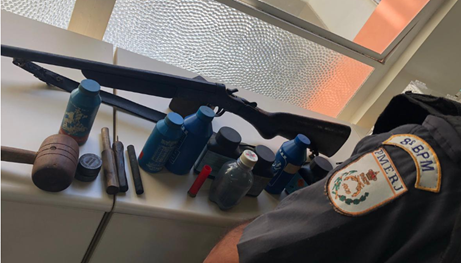 Espingarda, material de recarga, maconha e material para endolação foram apreendidos, entre a tarde e a noite dessa segunda-feira (7), em diferentes áreas da praia de Farol de São Thomé, em Campos.