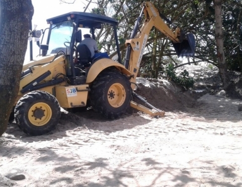 Na área, a Defesa Civil também fez a recolocação de dunas com a areia escavada da vala de contenção. Um caminhão de areia também foi providenciado para completar o restante do trabalho. A intenção é, com essa areia, formar um dique de contenção.