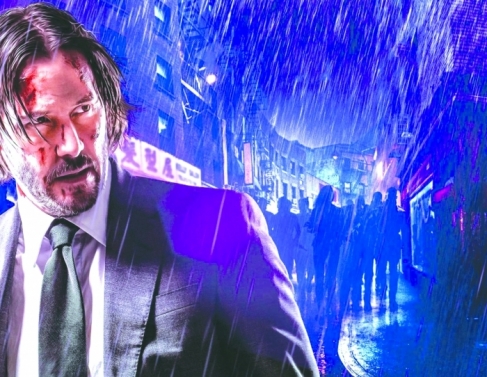 Assim como a atmosfera neo-noir, o cuidado na composição das maiores cenas de combate (vide a de Casablanca com direito a Halle Berry e seus dois cachorros) eleva “Parabellum” a um nível tão divertido quanto surpreendente. A fluidez da montagem nessas passagens mais frenéticas é muito bem feita e, com a presença forte de Keanu Reeves junto da ótima coreografia, não importa qual ferramenta ele utilize: sejam facas, livros, cavalos, motos ou cachorros, todas serão companhias certeiras em cada conflito. A única questão negativa que envolve Reeves é a precariedade de falas que o personagem possui, tornando sua performance um tanto robótica; mas nada que uma boa e velha frase antes dita em Matrix não dê um pouco de mais vivacidade ao assassino em fuga.