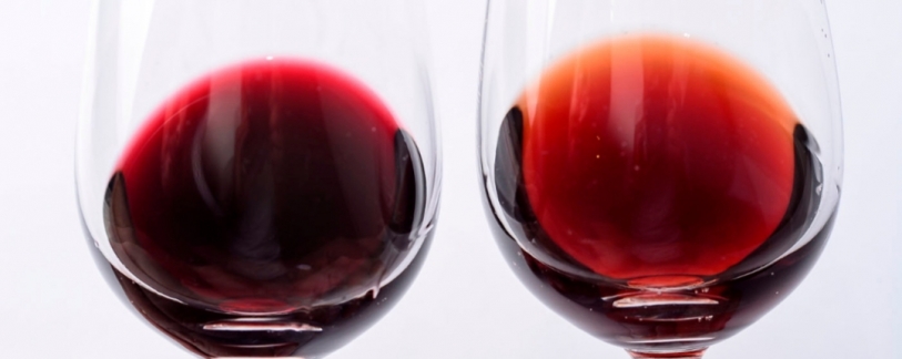 Comparação entre um vinho jovem (esq.) e um vinho envelhecido (dir.)