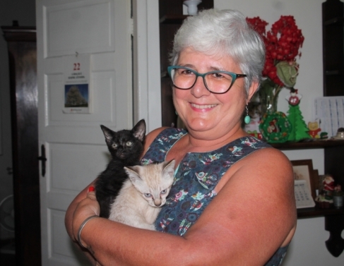 Resgate e adoção em resposta ao abandono - Moradora do Parque Califórnia, a servidora pública aposentada Joseth Bravo é tutora de três gatas, com idades entre cinco e nove anos. Todas foram resgatadas e adotadas. A proximidade com a causa animal foi iniciada quando uma amiga perdeu a gata.