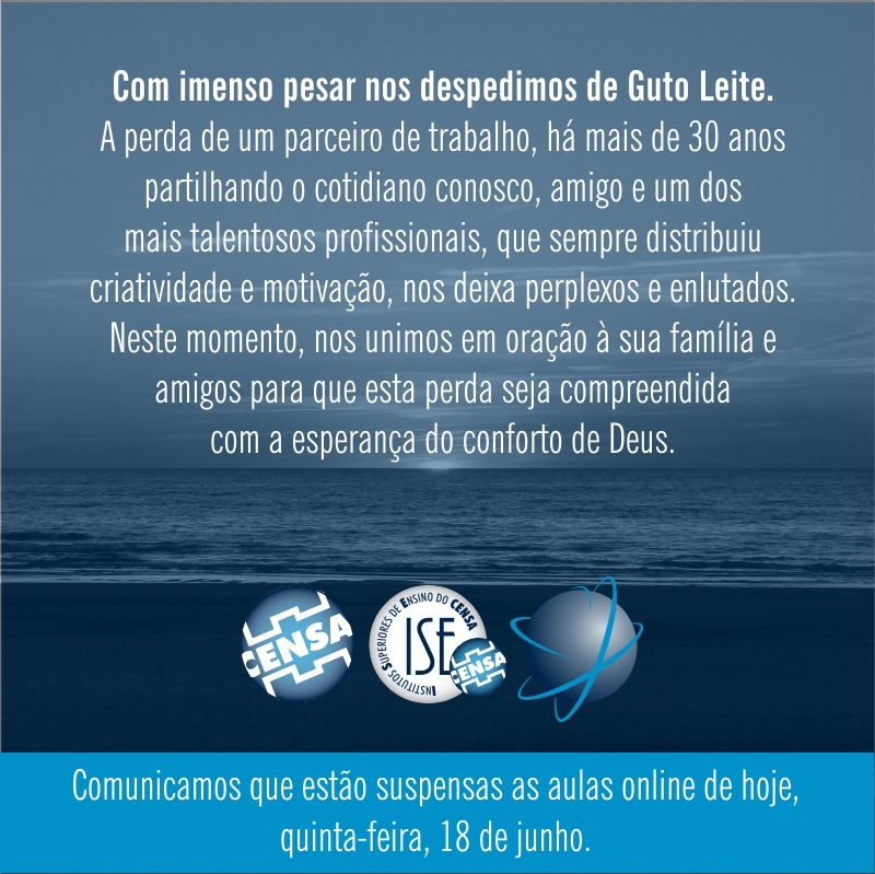 O Auxiliadora e o Isecensa emitiram um comunicado oficial, com pesar sobre o falecimento de Guto, relembrando a parceria de mais de 30 anos e suspendendo todas as suas aulas online de hoje. Confira: