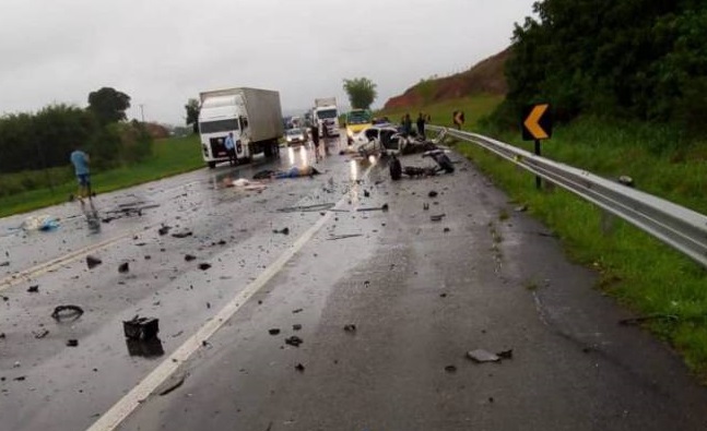 Com o impacto da colisão, os corpos das vítimas foram lançados do carro na pista da rodovia. O carro pequeno ficou completamente destruído, com diversas peças espalhadas pela rodovia.