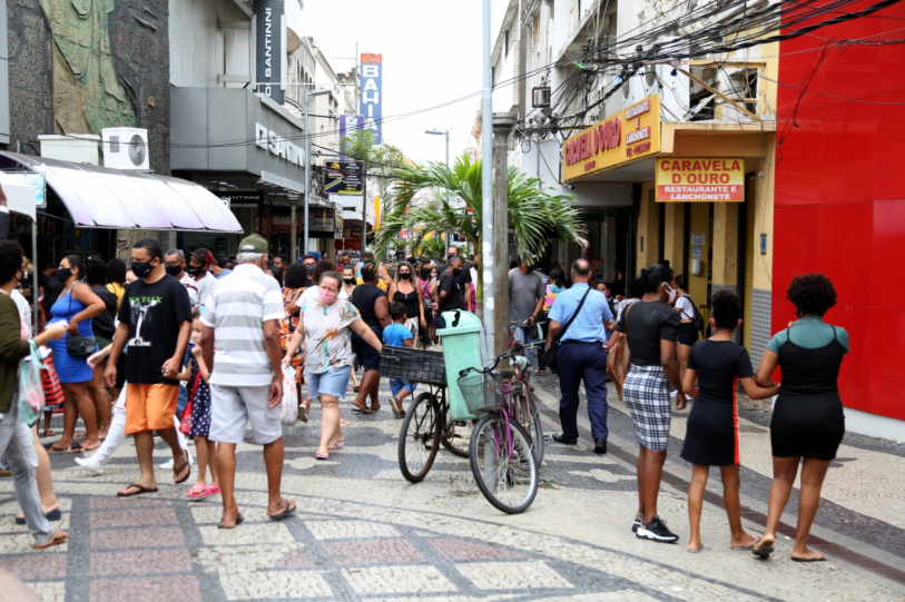 O natal chegou no Centro de Campos. Ninguém imaginaria que o município vive em uma alta no número de infecções pelo Covid 19, se não fosse a utilização das máscaras. Céu nublado, pouco vento, lojas cheias e movimento intenso nas calçadas, muitos transeuntes invadindo a pista de algumas ruas, como a João Pessoa; essa foi imagem vista por quem passava na área durante o final da manhã desta quarta-feira (23), há dois dias natal.