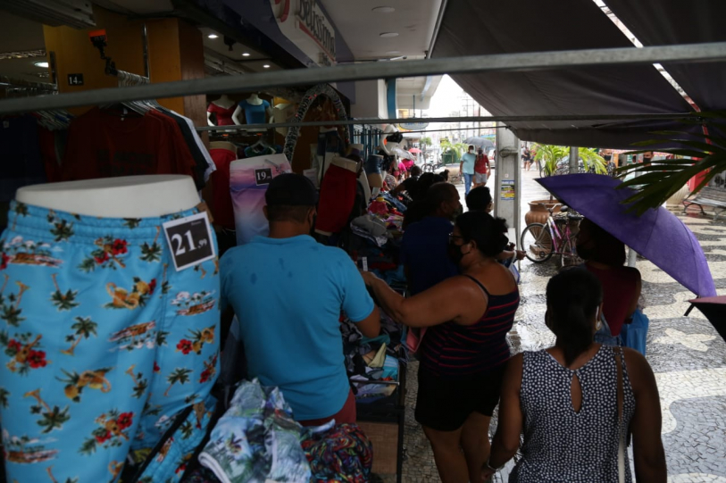 A vendedora de uma loja de artigos femininos do Centro, Nathália Vasconcelos, contou que o movimento foi o esperado levando em conta a pandemia da Covid 19. De acordo com ela, "segunda e terça foram dias mais movimentados e, realmente, o movimento desta quinta está tímido".