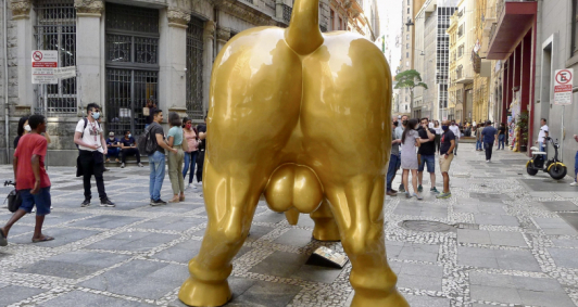 O tal “touro de ouro” da Faria Lima é uma excrecência em diversos sentidos. Diferente do americano, escolheu-se o ouro como o metal simbolizado. Em Wall Street a estátua é de bronze, sinal de força e durabilidade. Já um “bezerro de ouro” tem o significado bíblico de “falso Deus”. Nisso, talvez, o monumento esteja correto. E creio que acerta também na posição do animal representado — estando por aqui em defesa, acuado, quase caindo sentado. Nos EUA a posição é de ataque.