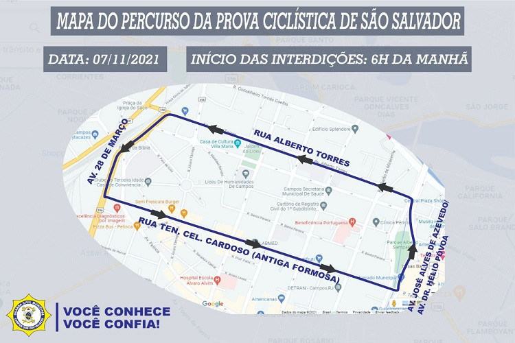 O trajeto da prova será entre as avenidas da 28 de Março, Alberto Torres, José Alves de Azevedo (Beira Valão) e rua Tenente Coronel Cardoso (antiga Formosa). O comandante da GCM, Wellington Levino, informa que as interdições serão totais e só será autorizada com a entrada dos moradores locais.