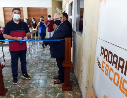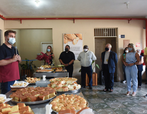 O prefeito Wladimir Garotinho, acompanhado da primeira-dama Tassiana Oliveira, participou, nesta sexta-feira (04), da reinauguração da Padaria Escola da Obra de Salvador, instituição social da Diocese de Campos, situada na Praça Ribeiro do Rosário, 16, no Parque Leopoldina. A solenidade reuniu autoridades civis, como padres, secretários e vereadores. A Padaria Escola ficou fechada durante dois anos, por conta da pandemia. As atividades retornam na próxima segunda-feira (07) com a produção de bolos, pães de cachorro quente e salgado diversos.