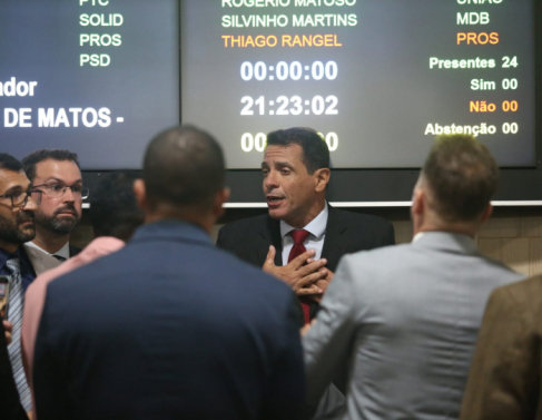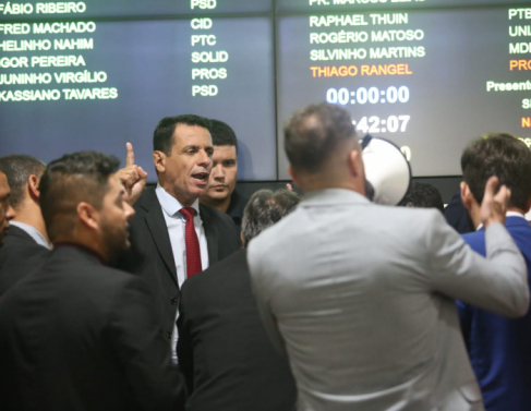 Após a votação e aprovação da adequação do piso salarial dos professores, o vereador Anderson de Matos (Republicanos) começou a leitura de uma representação assinada pelos 13 vereadores de oposição pedindo a destituição do atual presidente da Casa, Fábio Ribeiro (PSD), e do vice, Juninho Virgílio (Pros). O grupo aponta que houve “ilegalidade” e “abuso de autoridade” na condução da eleição da Mesa Diretora, do dia 15 de fevereiro, na qual o líder da oposição, Marquinho Bacellar (SD), chegou a ser proclamado vencedor. Posteriormente, a votação foi anulada. Durante as discussões que se seguiram, o clima esquentou, precisando da intervenção dos seguranças para afastar Fábio e Maicon Cruz (PSC), um dos personagens centrais na polêmica envolvendo a Mesa, já que chegou a assinar um termo de compromisso para votar no atual presidente, mas, no plenário, surpreendeu e votou em Marquinho.