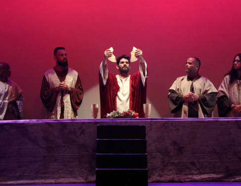 Misturando tradição, fé e emoção, a encenação da Via Sacra apresentada pelo Grupo de Teatro Sacro Dom Carlos Alberto Navarro foi a atração do Teatro Municipal Trianon nesta sexta-feira (15). apresentação marcou a volta do espetáculo aos palcos, depois de dois anos, em razão da pandemia da Covid-19. Intitulada “Paixão, Morte e Ressurreição de Jesus Cristo – 40 anos de evangelização”, a encenação celebrou suas quatro décadas. O evento foi promovido pela Prefeitura de Campos através da Fundação Cultural Jornalista Oswaldo Lima (FCJOL).